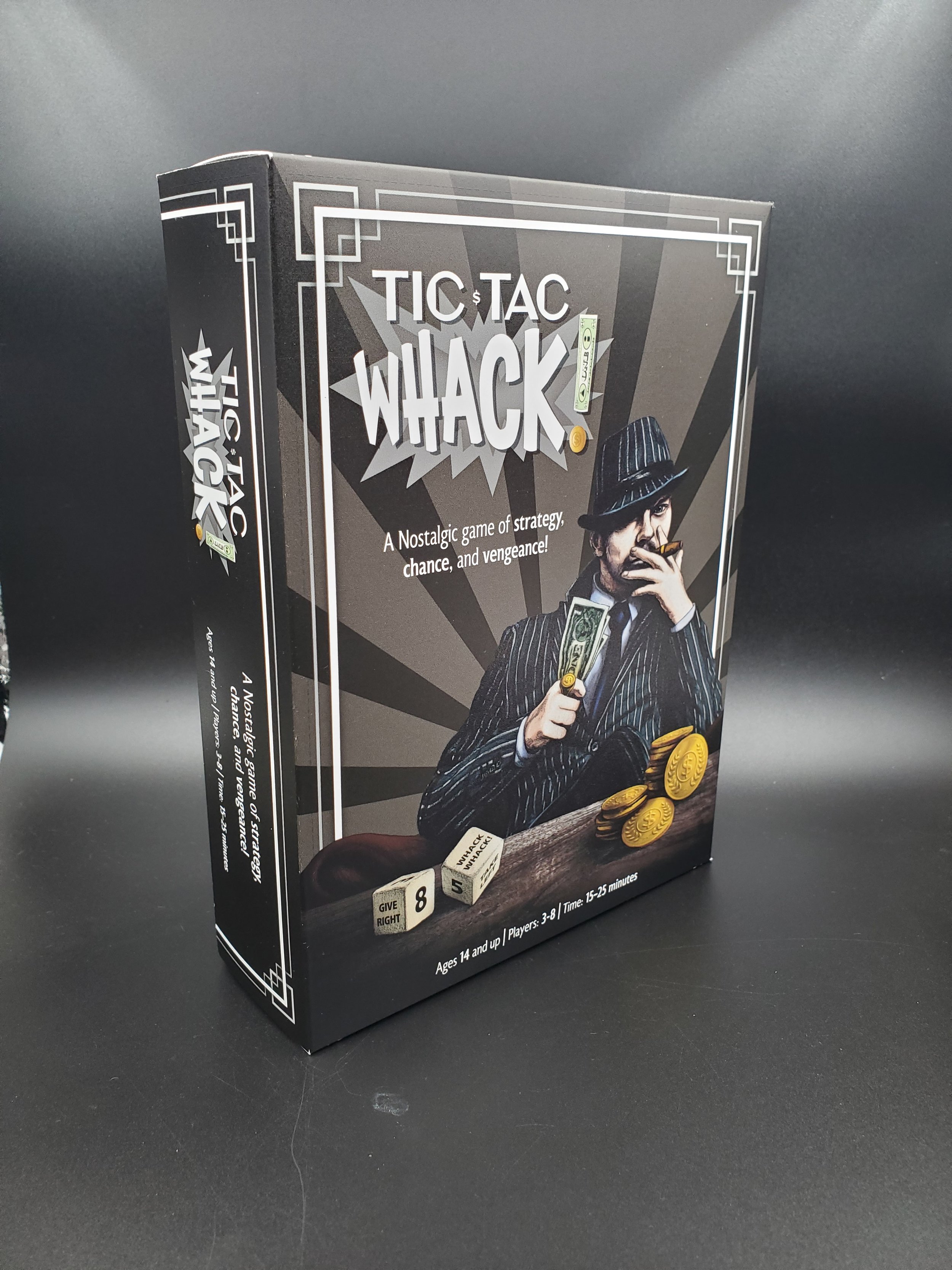 Did you know that Tic Tac Toe was one of the FIRST video games ever created in 1952 for the EDSAC computer? And did you know that the peak years for organized Mobster crime in the United States was from the 1930’s to 1960’s? What do these two things have in common? Absolutely nothing! But we thought it would be fun to bring them together in this energy packed, easy to learn board game, stylishly designed with an old fashioned black and white theme!